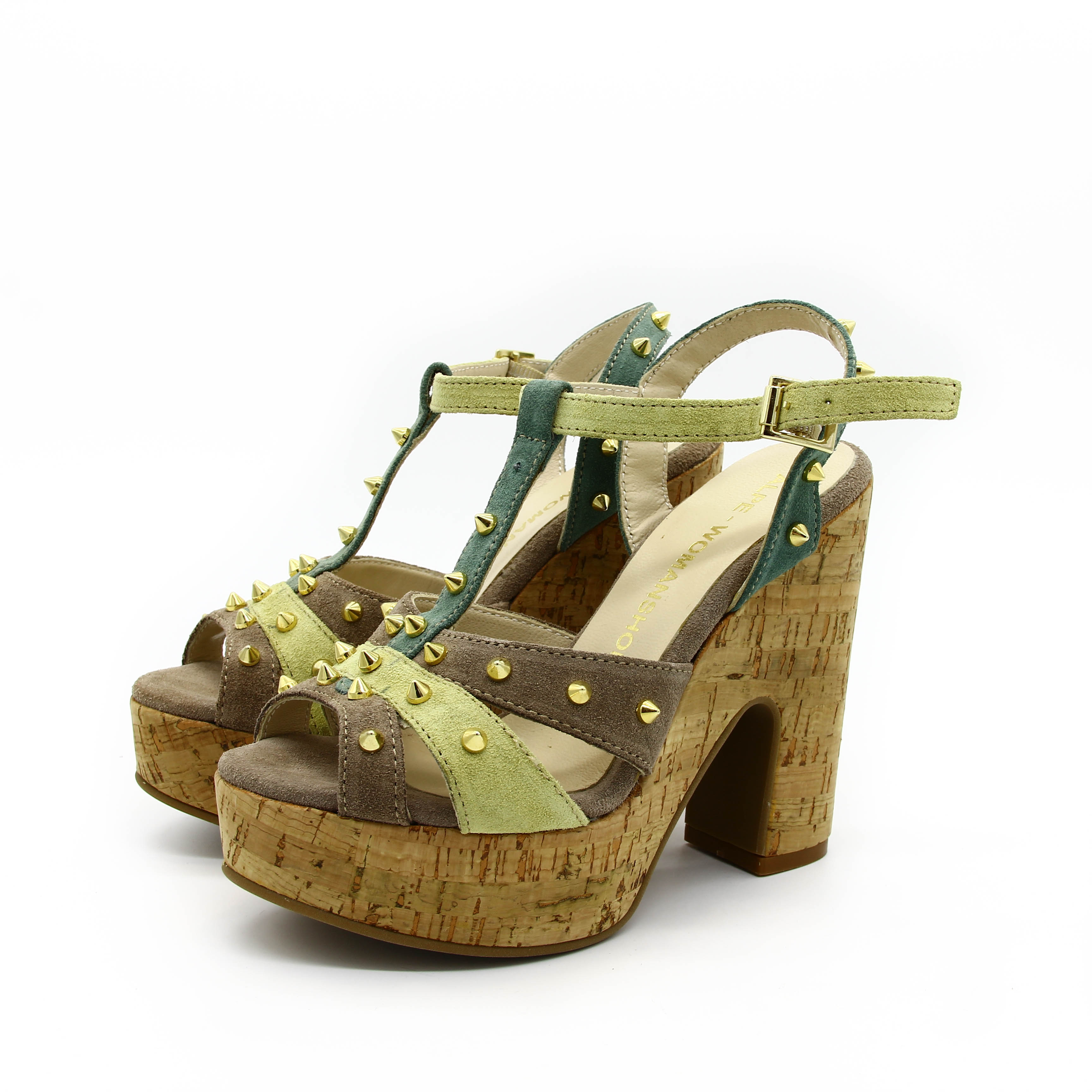 босоножки на пробковой подошве. украшены металлическими элементами.